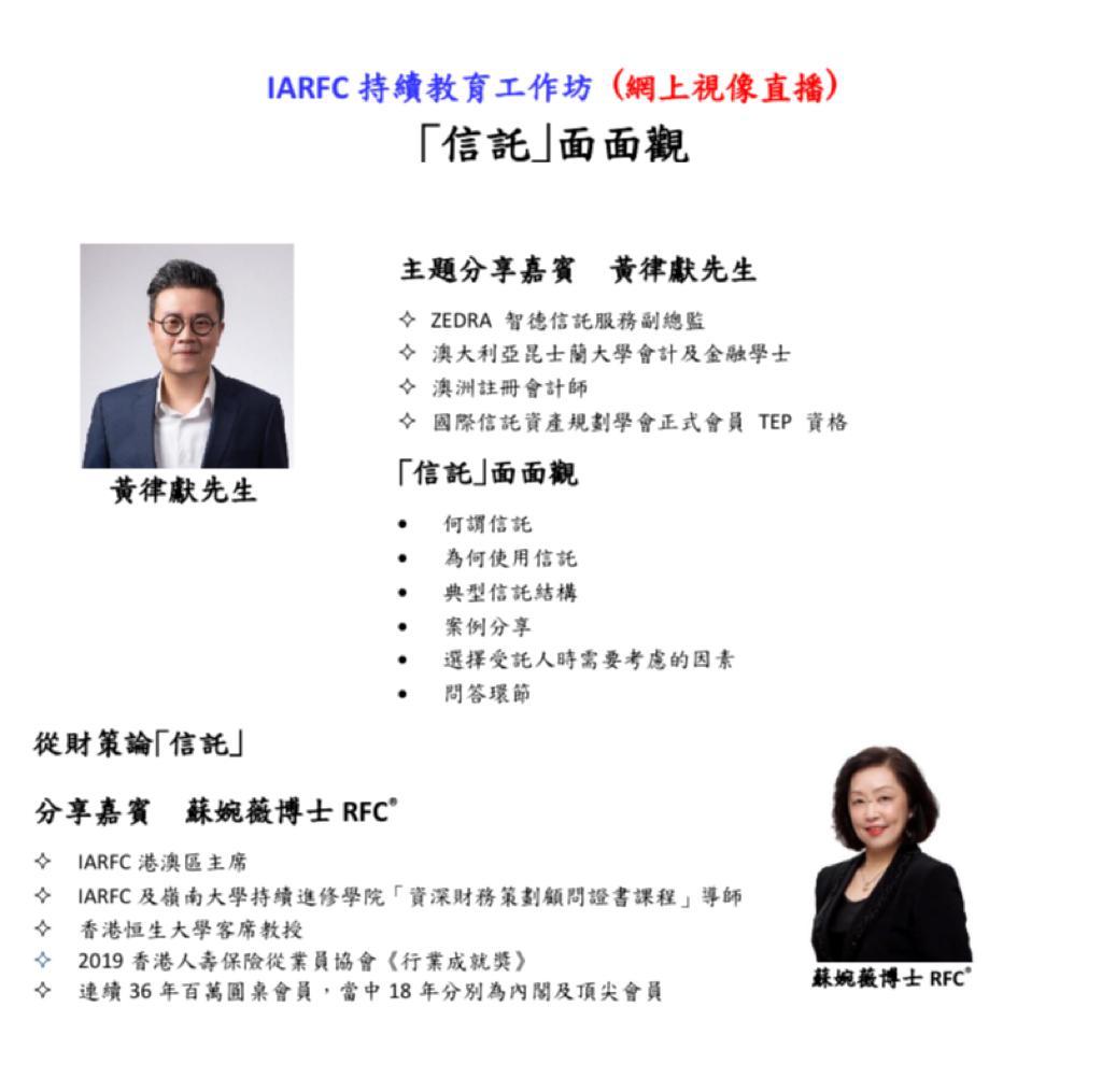 IARFC持續教育工作坊 (網上視像直播) 「信託」面面觀 2022年12月9日(星期五) 下午 2:30 - 4:00