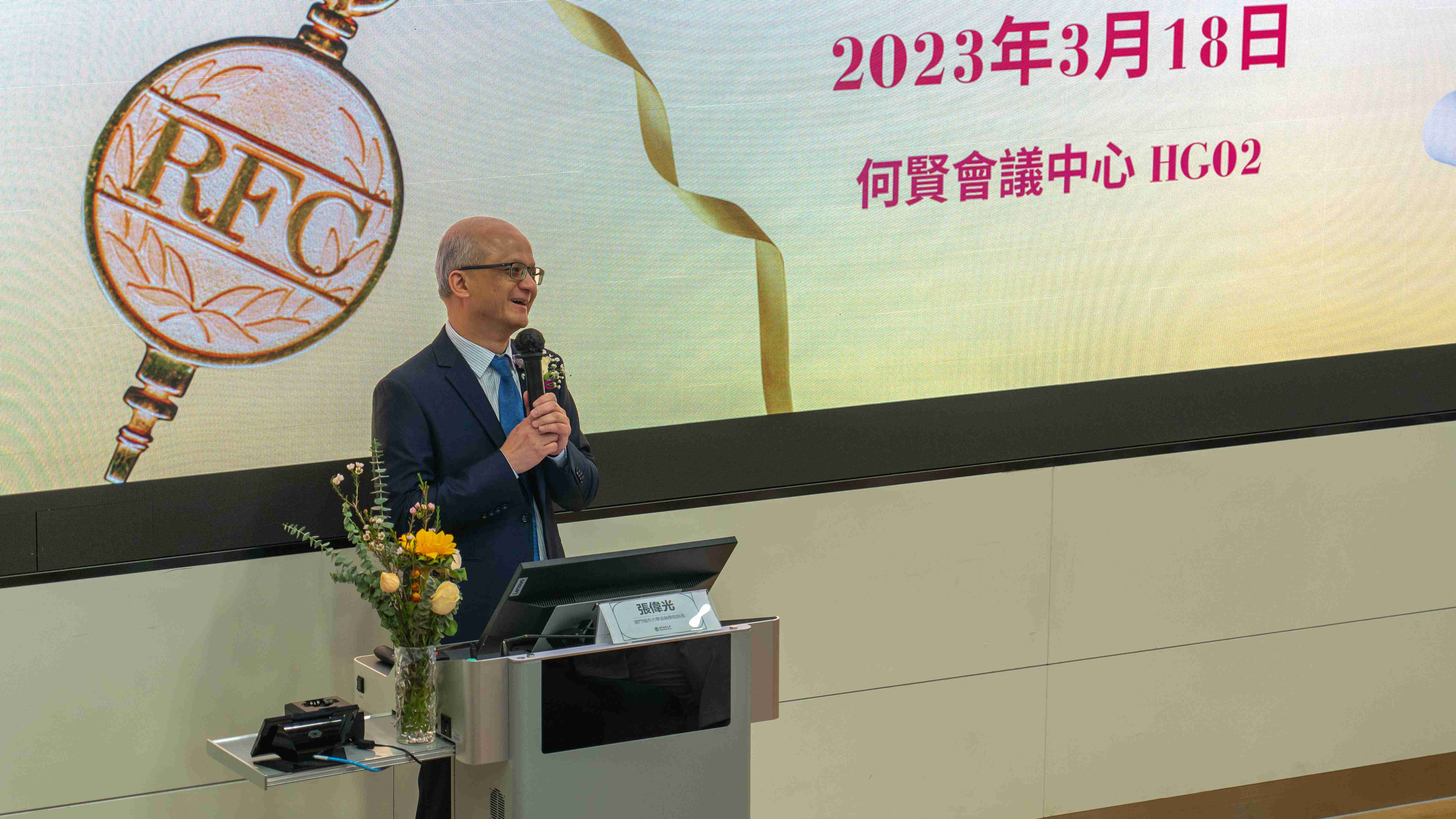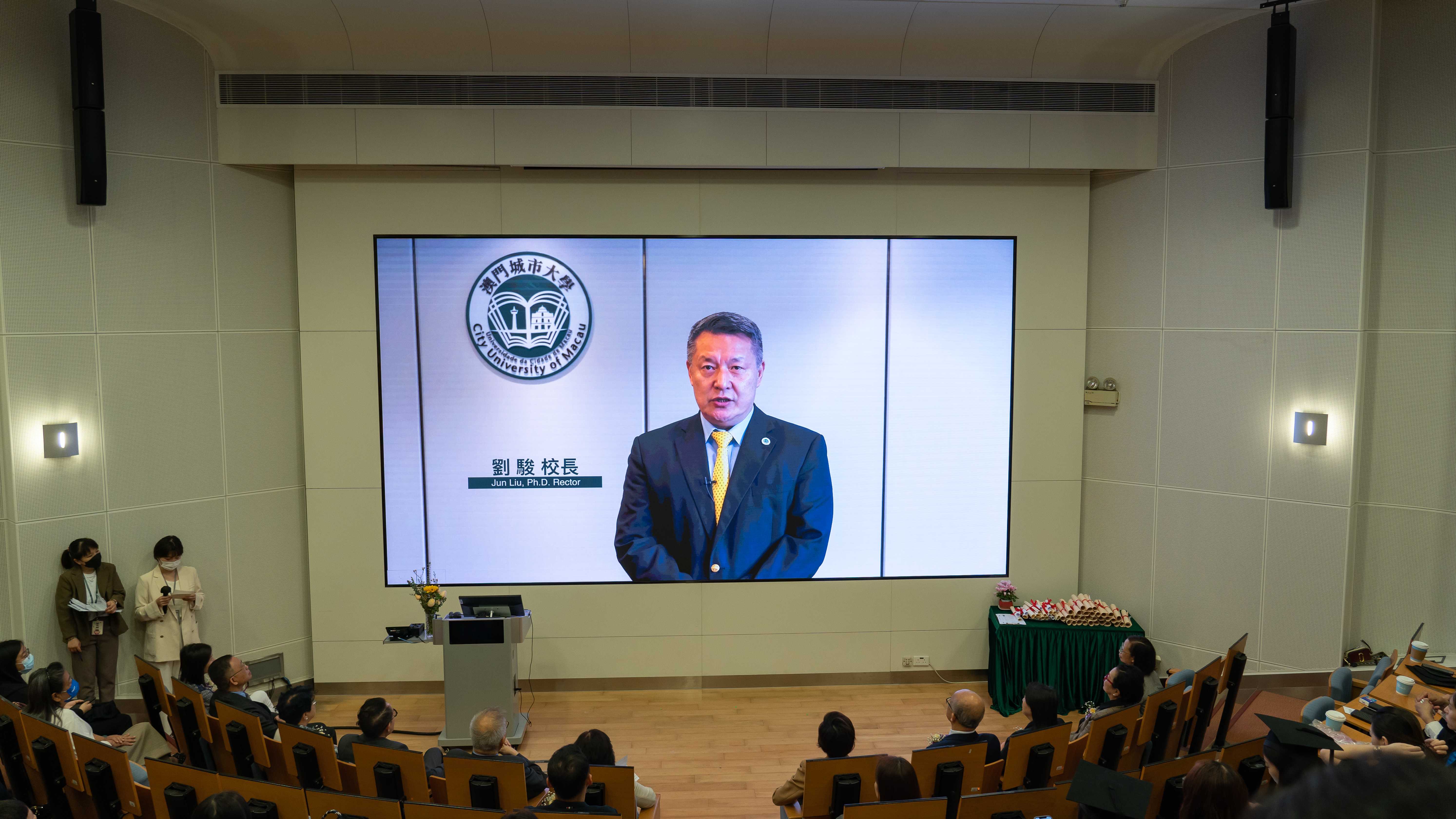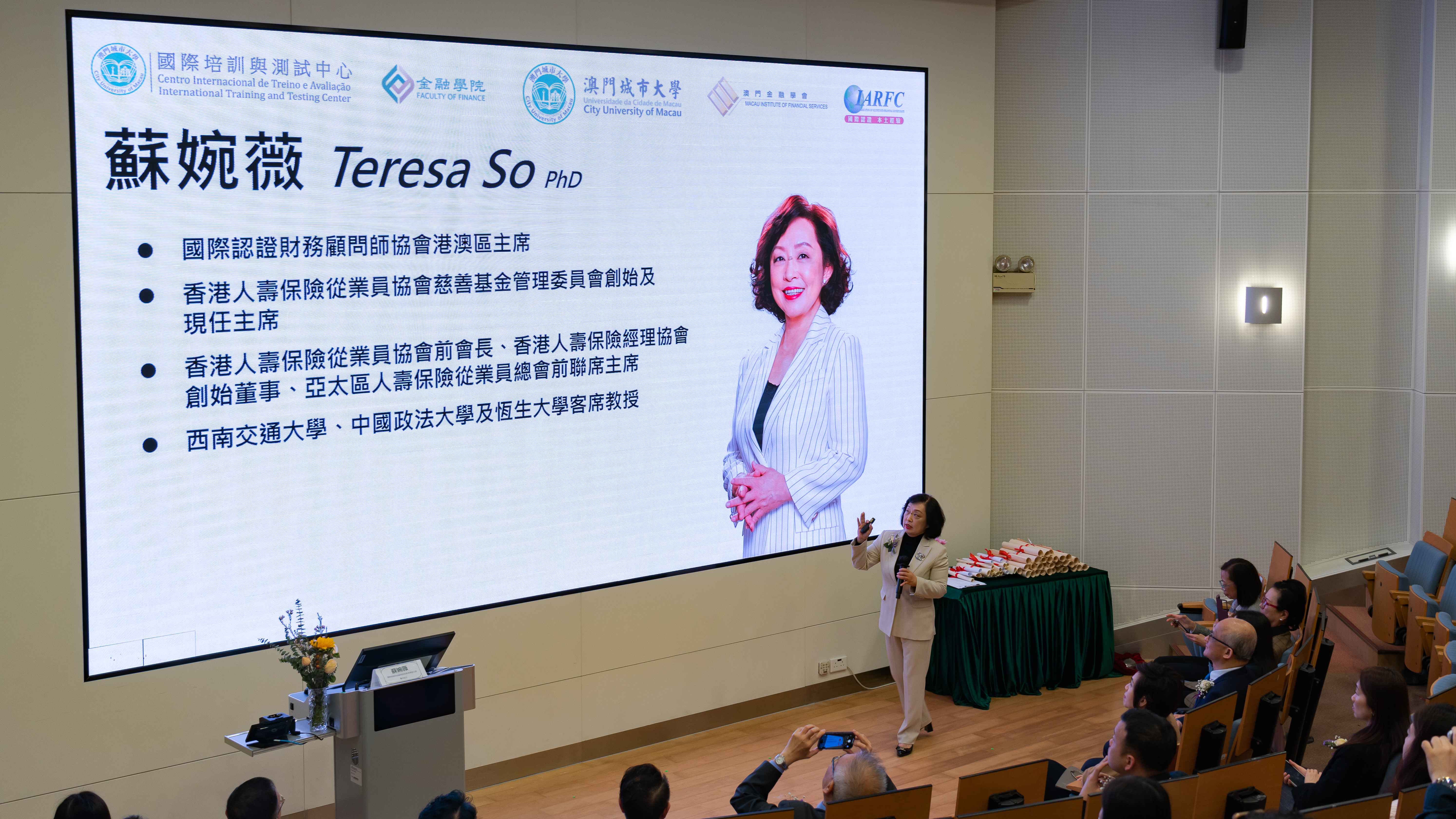 典禮榮獲國際認證財務顧問師協會港澳區主席蘇婉薇博士RFC®擔任主題演講嘉賓。蘇主席以「需求升級 市場轉型」為題,向眾與會者闡釋粤港澳大灣區現時和預計人民財富狀况,並說明財務策劃業在區內具無限發展空間。蘇主席熱烈歡迎應屆獲頒授RFC專業認證者加入IARFC的大家庭,並鼓勵他們與時並進,不斷提升競爭力。蘇主席對於與澳門城市大學及澳門金融學會的融洽合作表示感謝。